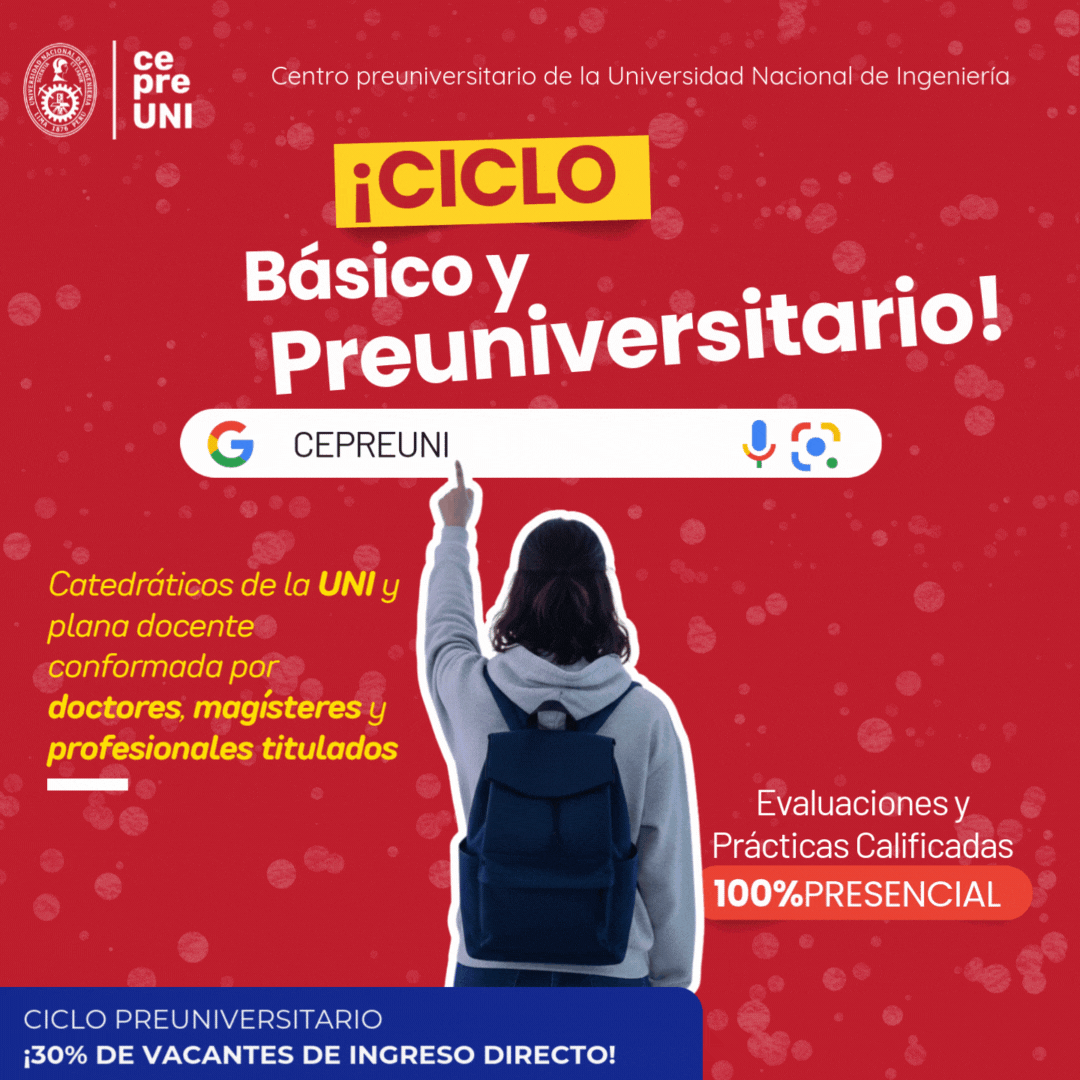 Nuestro Centro de Estudios Preuniversitarios de la Universidad Nacional de Ingeniería (CEPREUNI) tiene más de 22 años en servicio de una educación de calidad para todos los estudiantes a nivel nacional. Nuestro propósito: exigencia y competitividad para el ingreso satisfactorio a la Universidad Nacional de Ingeniería (UNI).